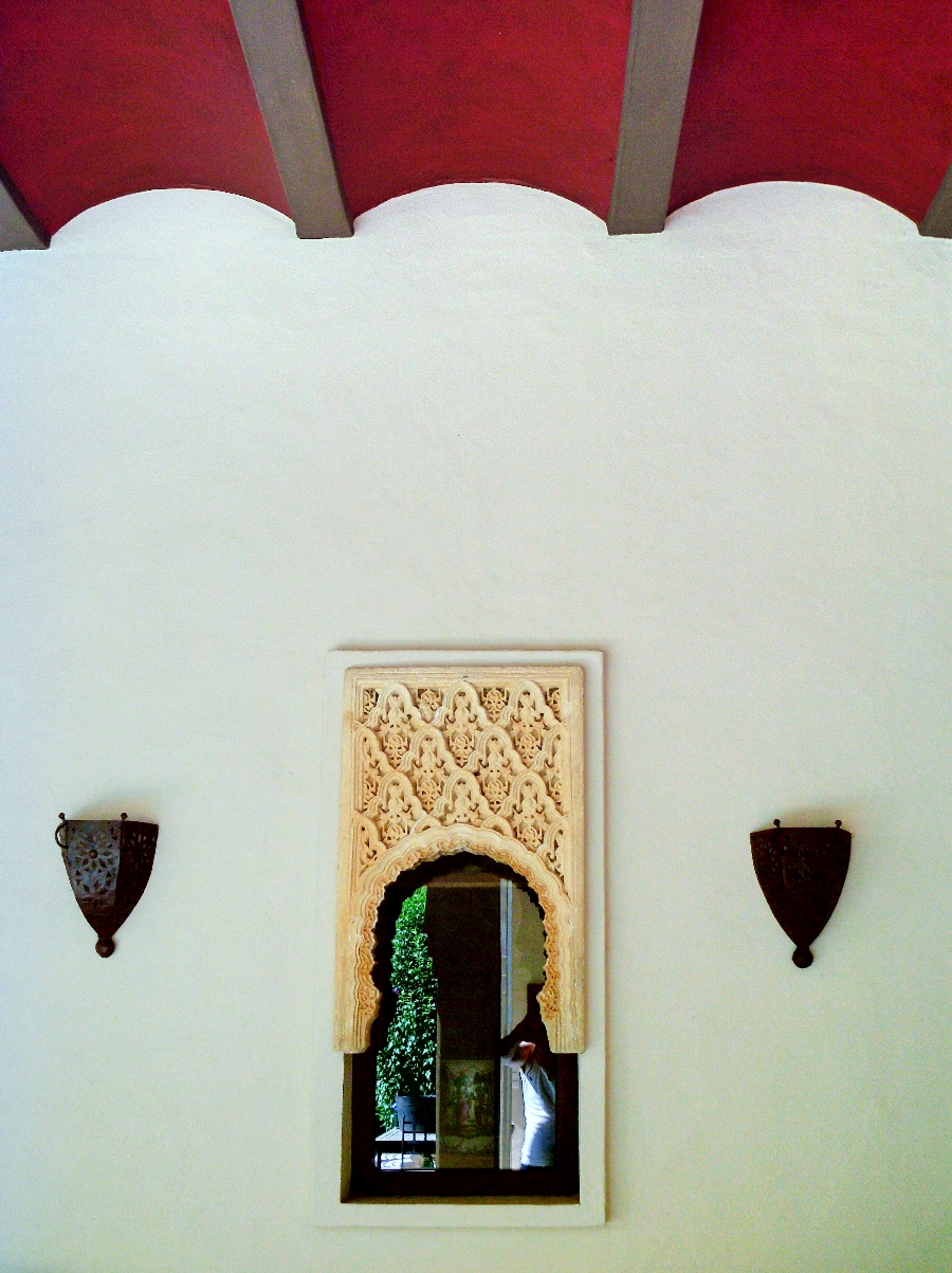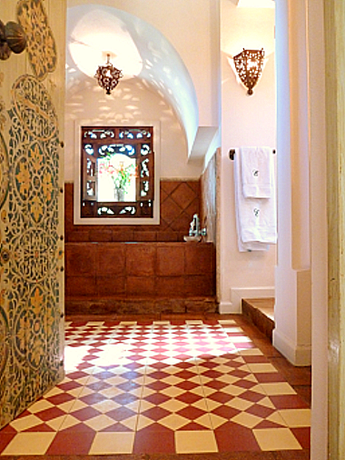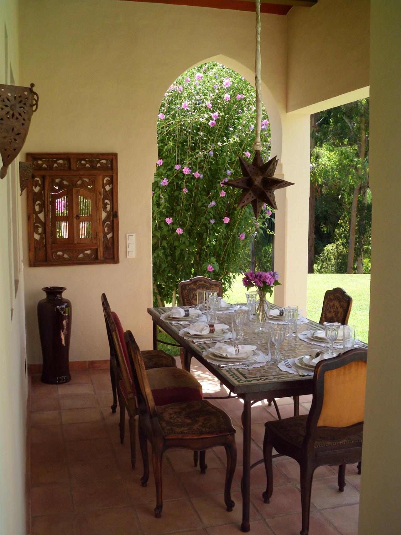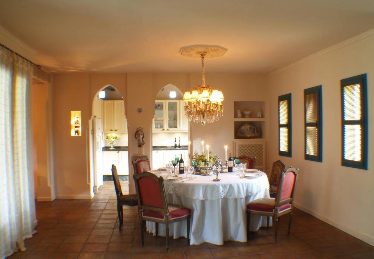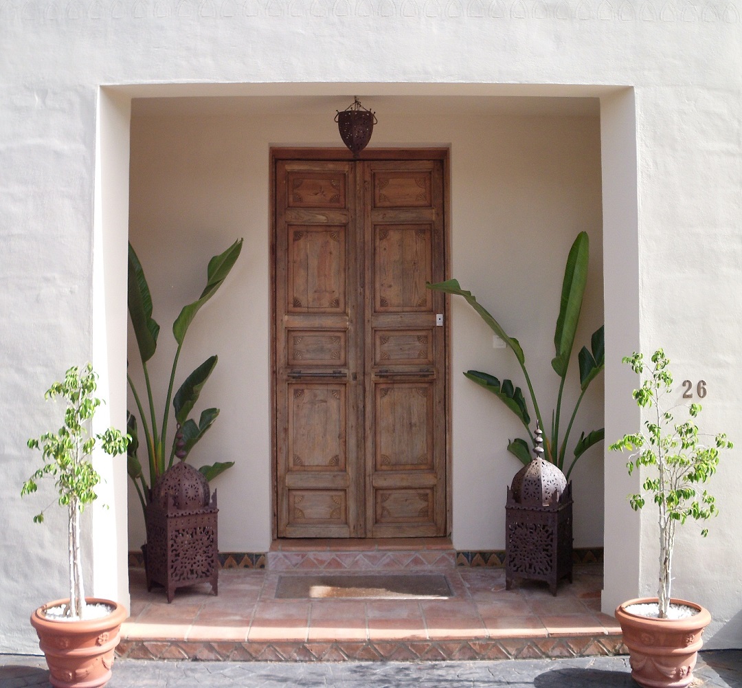 Tous les espaces de vie ont de grandes baies vitrées qui s'ouvrent sur la piscine. Beaucoup de détails ont été réalisées par des artisans marocains. Cela comprend la décoration des portes, moulures et la mosaïque qui entoure la piscine. La maison dispose également de divers antiquités incorporé dans l'architecture. Portes Espagnoles anciennes, piliers africains et indonésiens, carreaux de ciment dans les salles de bains...