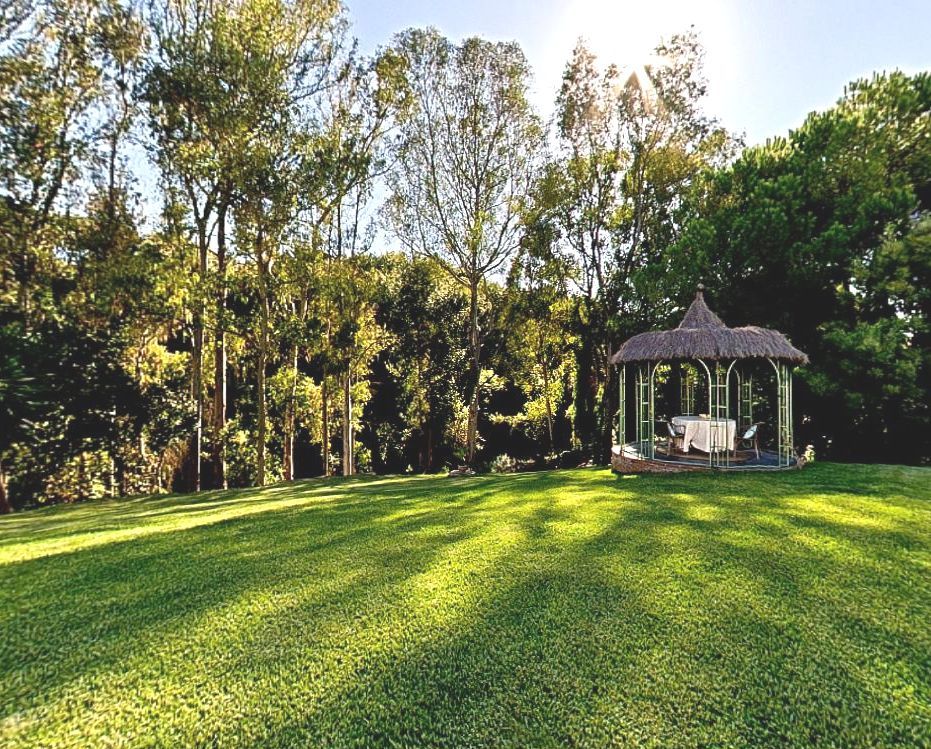 Contrairement à la plupart des maisons a Sotogrande, le jardin est entièrement privé. Il fait face à la zone verte protégée, avec ses grands arbres matures d'eucalyptus, de liège et de pins.Les espaces extérieurs comprennent de grandes terrasses avec différentes zones pour se détendre ou manger.
